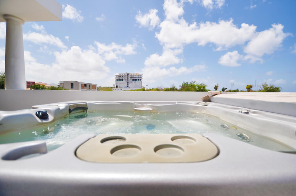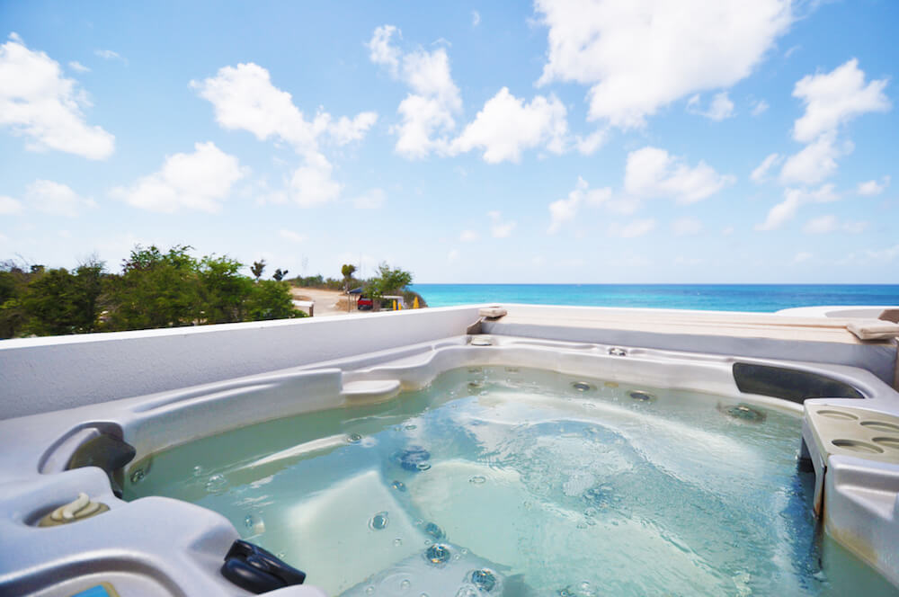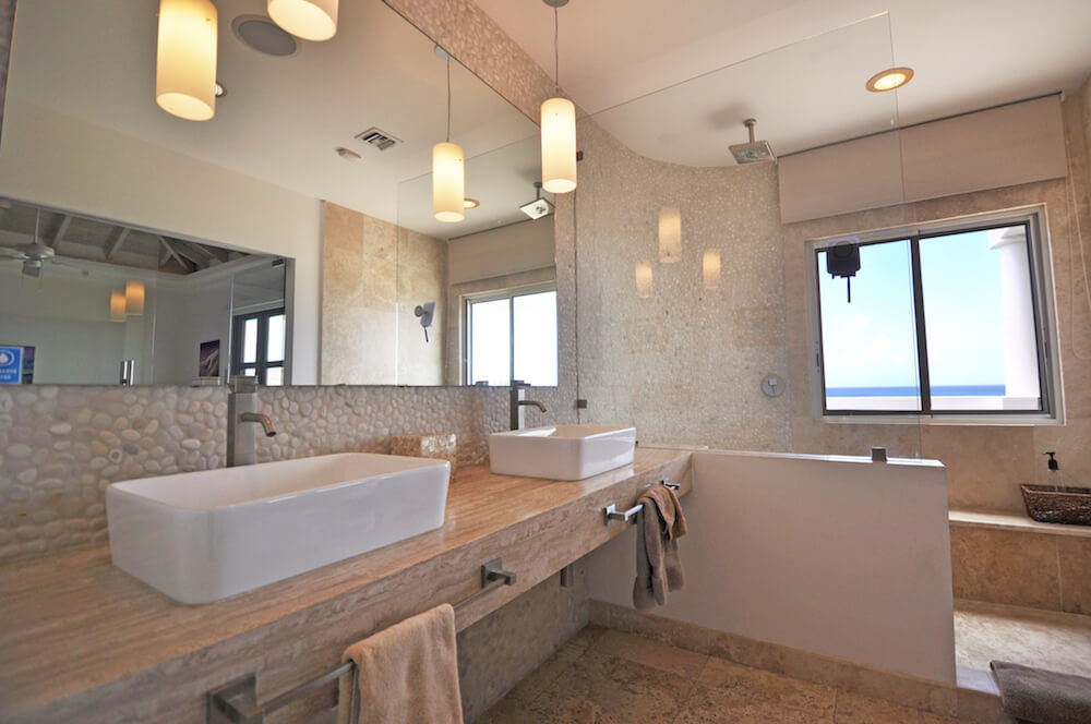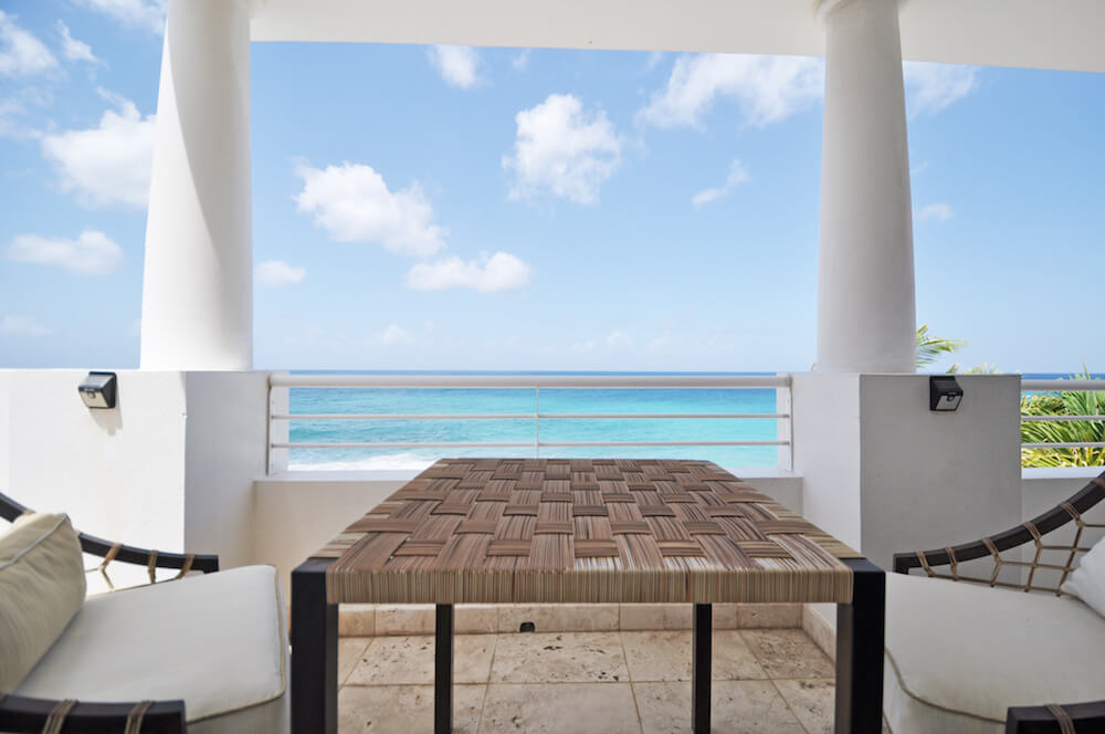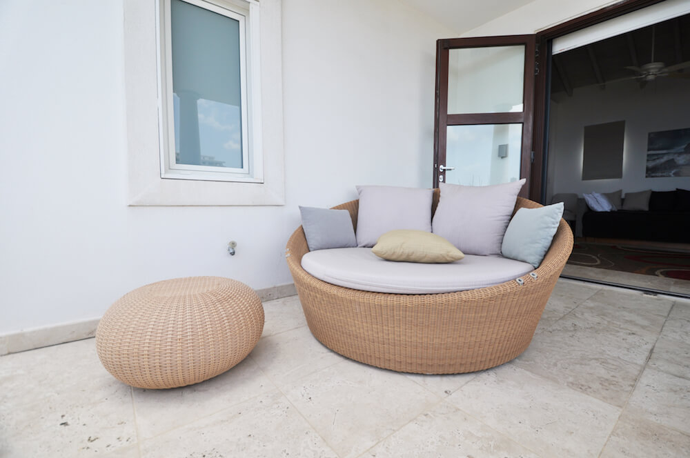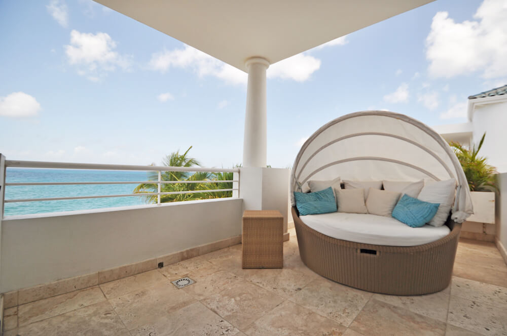 The upper floor bedrooms open to a sitting area and 4 person Jacuzzi on the wrap around balcony. The perfect place to watch the sun set into the soothing waters of the Caribbean Sea from the relaxing hot tub or the comfort of the Dedon Oval Bed.