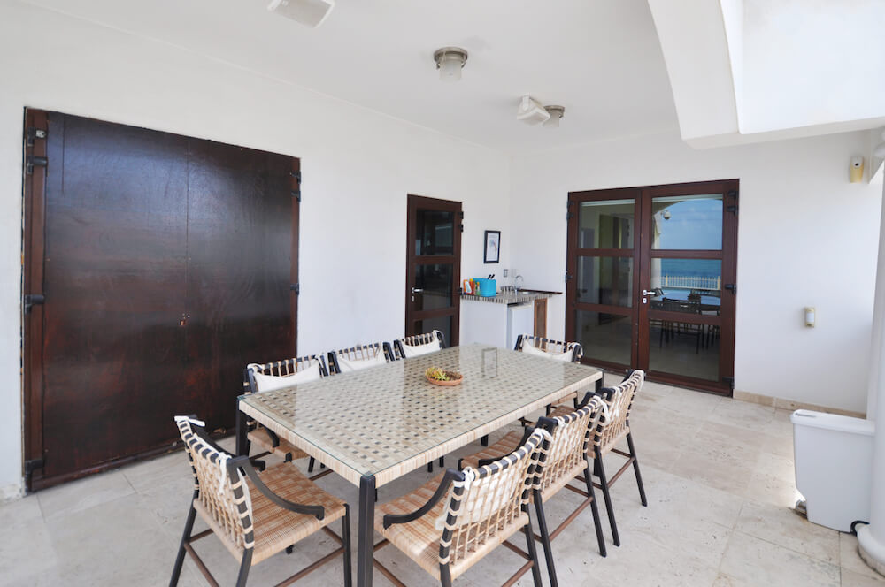 • Under the covered terrace area there is an outdoor dining area (seating for 8) & terrace bar with under counter refrigerator.