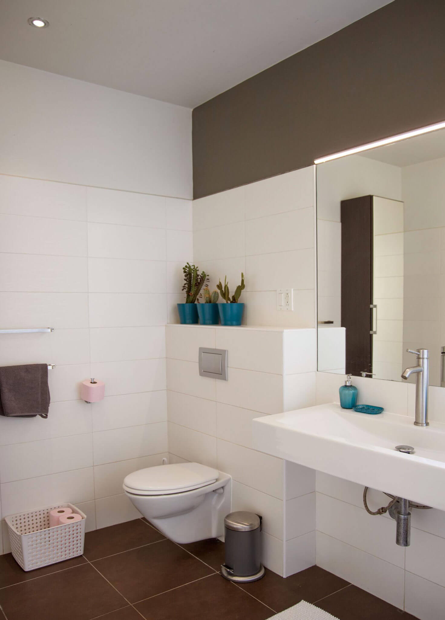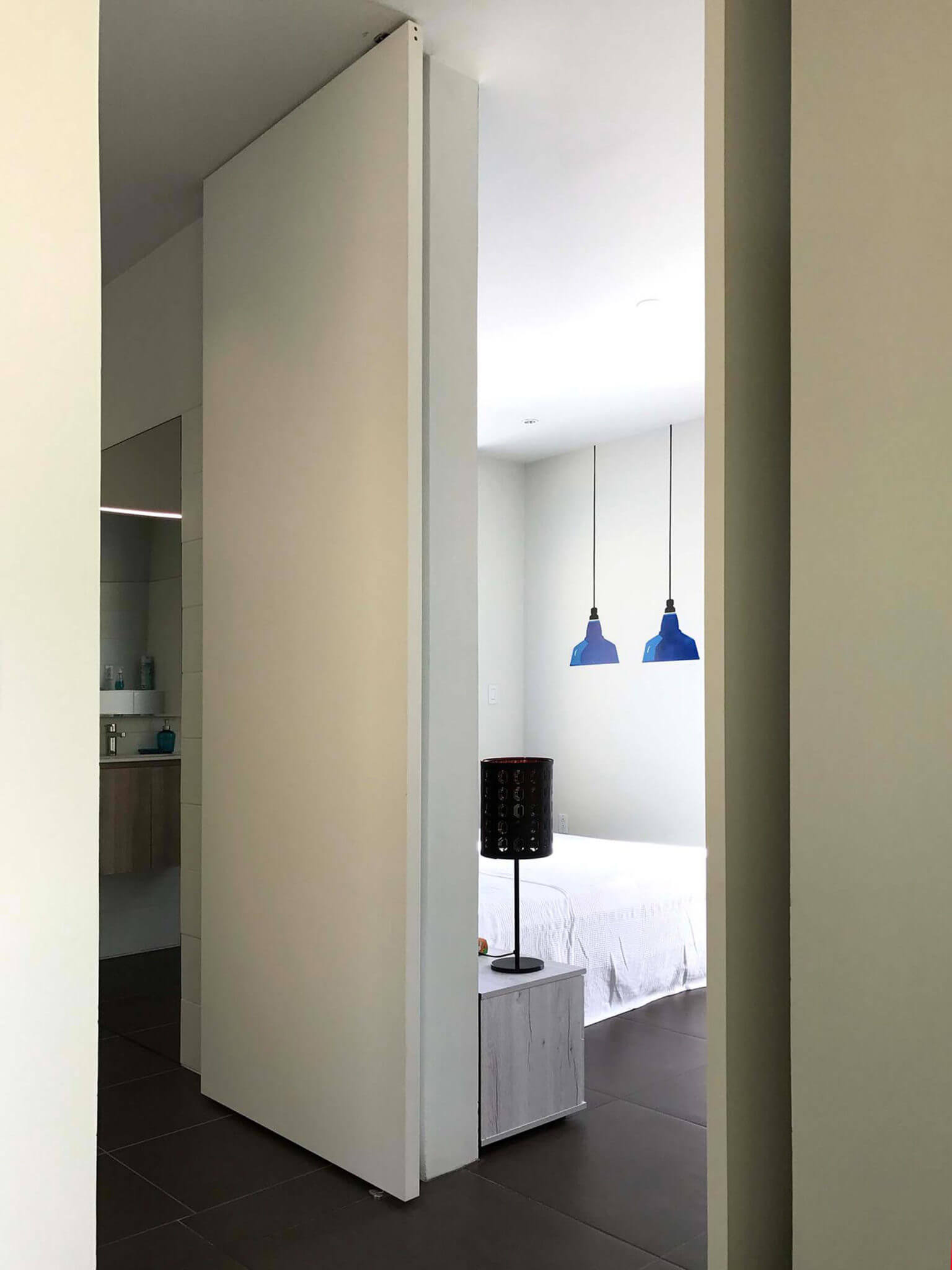 The villa has a clean, tranquil and modern character. The interior is designed in a minimal, but comfortable way to create a calming effect. The villa has 4 bedrooms in total, three bedrooms in the main house and a queen en-suite on the lower level with private entry to the gardens. On the top level you will find two queen bedrooms and a shared full bathroom. The master suite is located on the main level with a private entry leading to the pool area. This room has a custom-made master bed that hosts two queen-size mattresses, to allow for a spacious night-time experience.