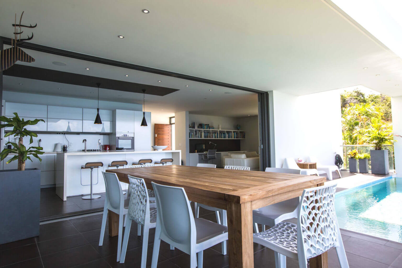 • The open living space and pool area are cooled by the natural Caribbean breeze.