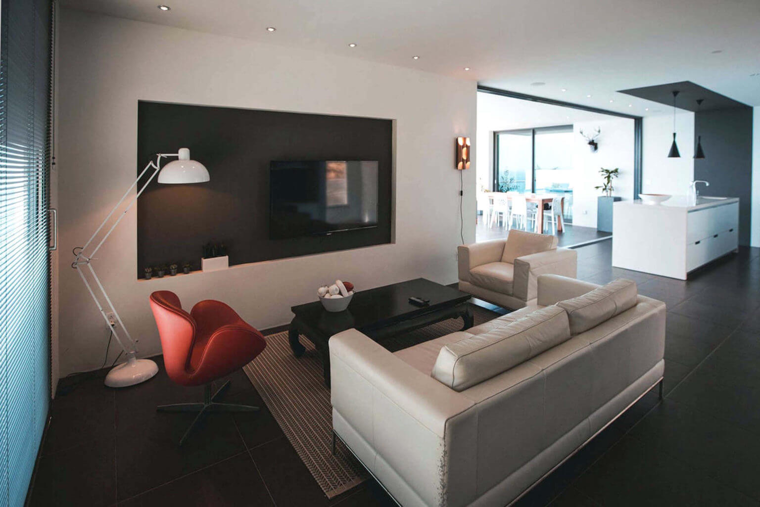 • Living area overlooking garden area with large TV