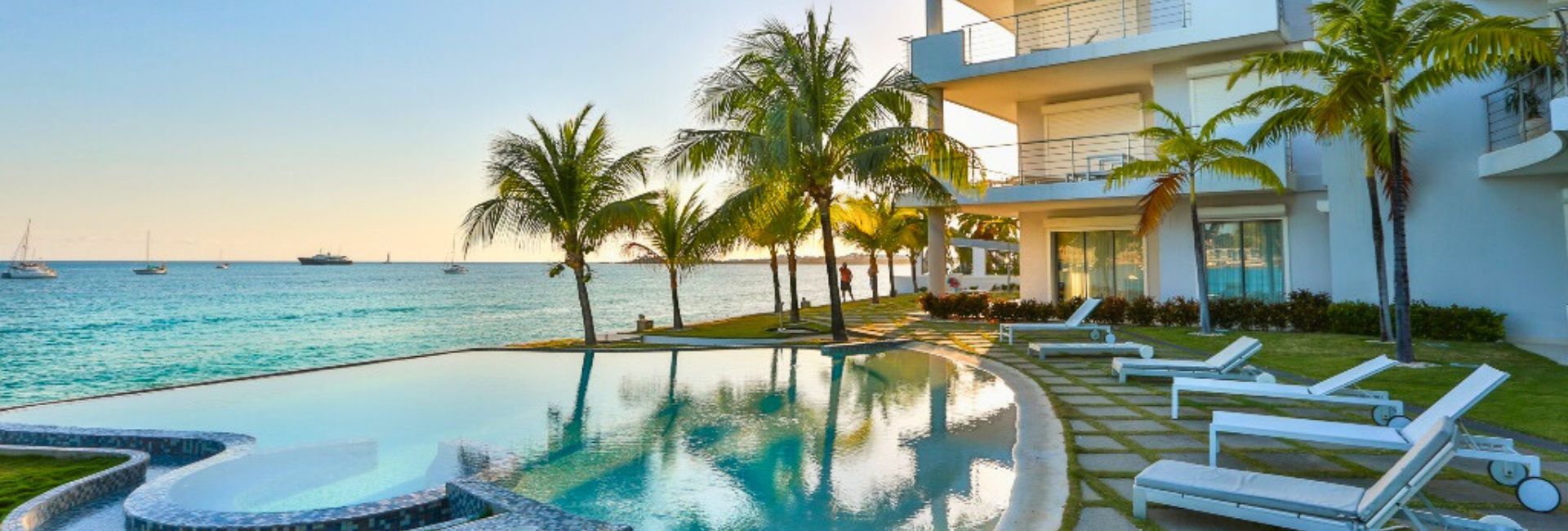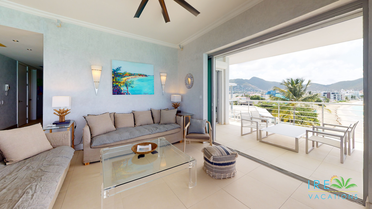 Featuring a spacious wrap-around balcony, large common pool and direct beach access, Living the Dream is the beach lover’s perfect vacation property. Each room has balcony access where you can enjoy amazing views of the islands, like Saba, Anguilla and the French side. The central location means restaurants; shopping, bars are all within easy distance.